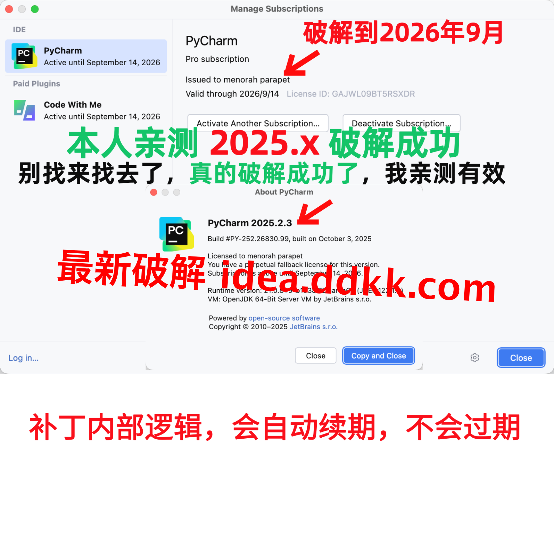 PyCharm 2025.2.3 破解补丁,不要移动位置,不要删除【否则破解失败】