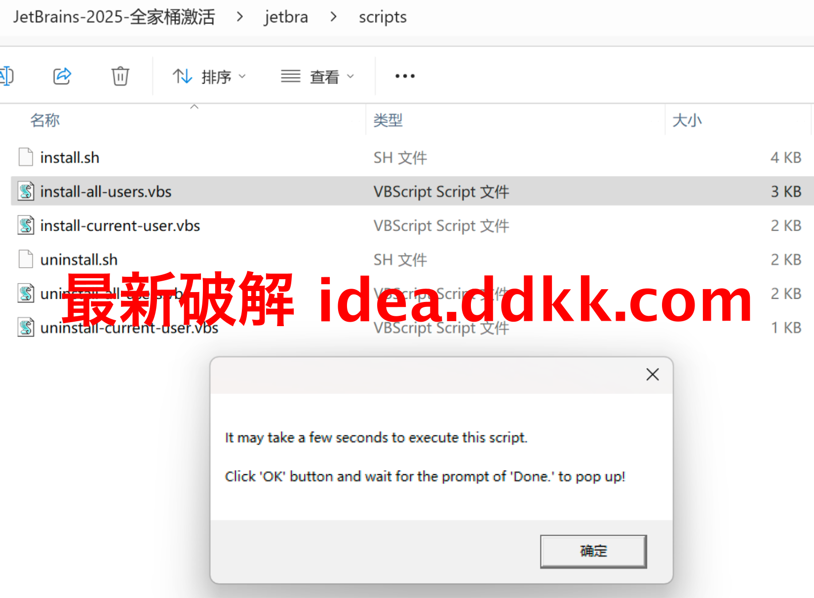 运行此脚本需要添加 idea.vmoptions 文件的环境变量,可能会杀毒软件误报为木马,允许运行就行,不放心看源码即可。