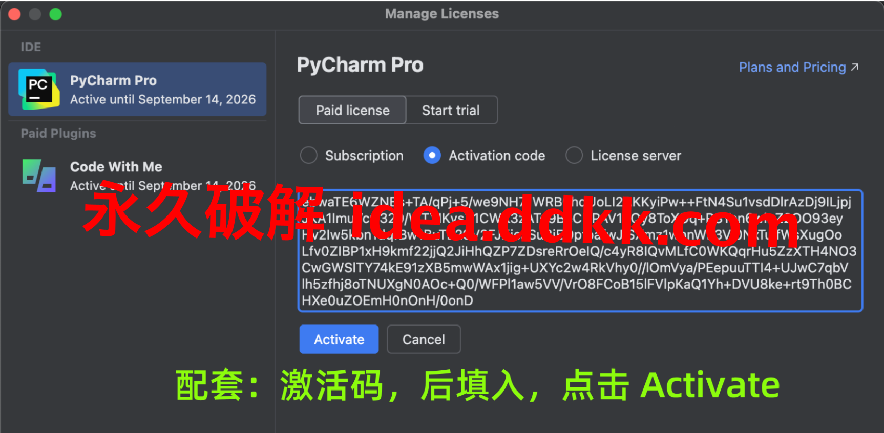 补丁安装完成后,接下来就是输入激活码的环节了。这一步也很关键,因为不同的JetBrains产品对应的激活码是不一样的,千万别搞混了。