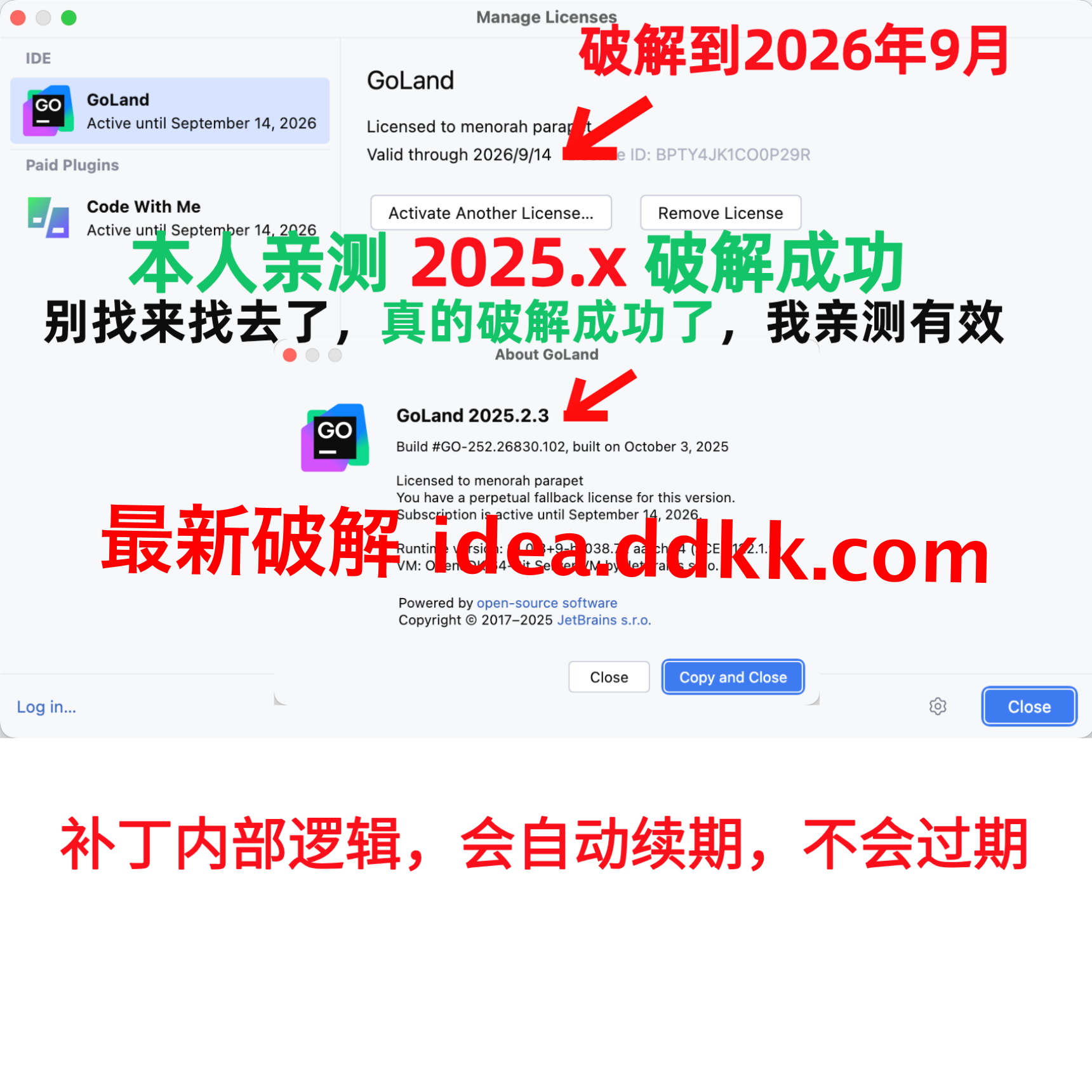 GoLand 2025.2.3 破解补丁,不要移动位置,不要删除【否则破解失败】