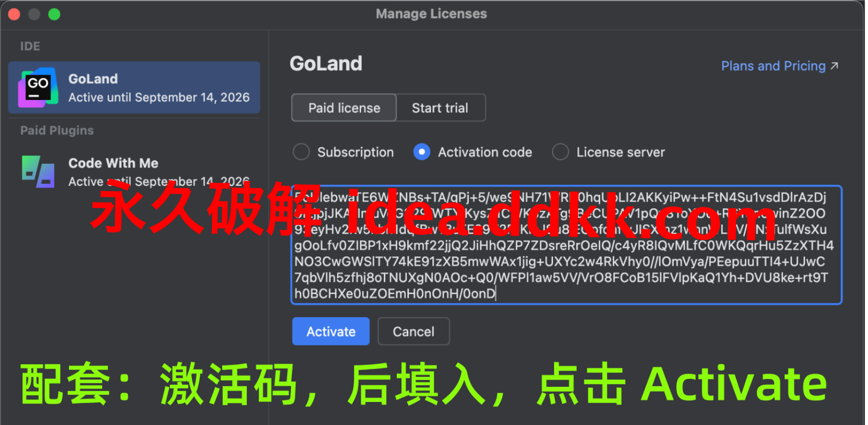 Jetbrains 每个产品,对应激活码都不一样