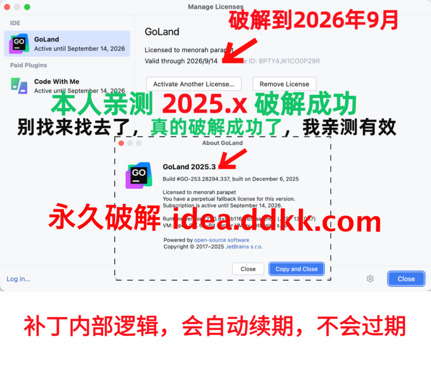 GoLand 2025.2.4 破解补丁,不要移动位置,不要删除【否则破解失败】