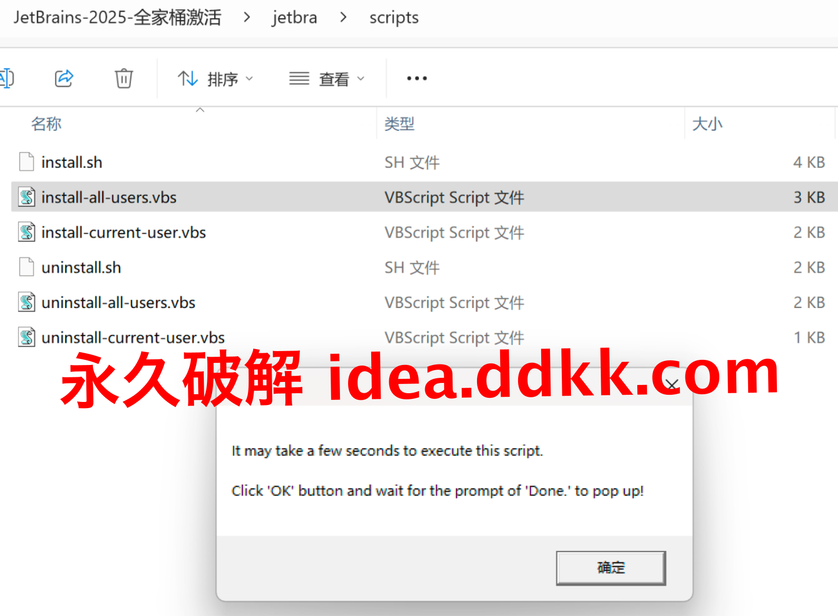 补丁包下载下来解压之后,你会看到一个 scripts 目录,这个文件夹里装着各个系统的安装脚本;脚本的作用就是自动帮你把破解补丁加载到 GoLand 的启动配置里,比手工改配置文件方便太多了