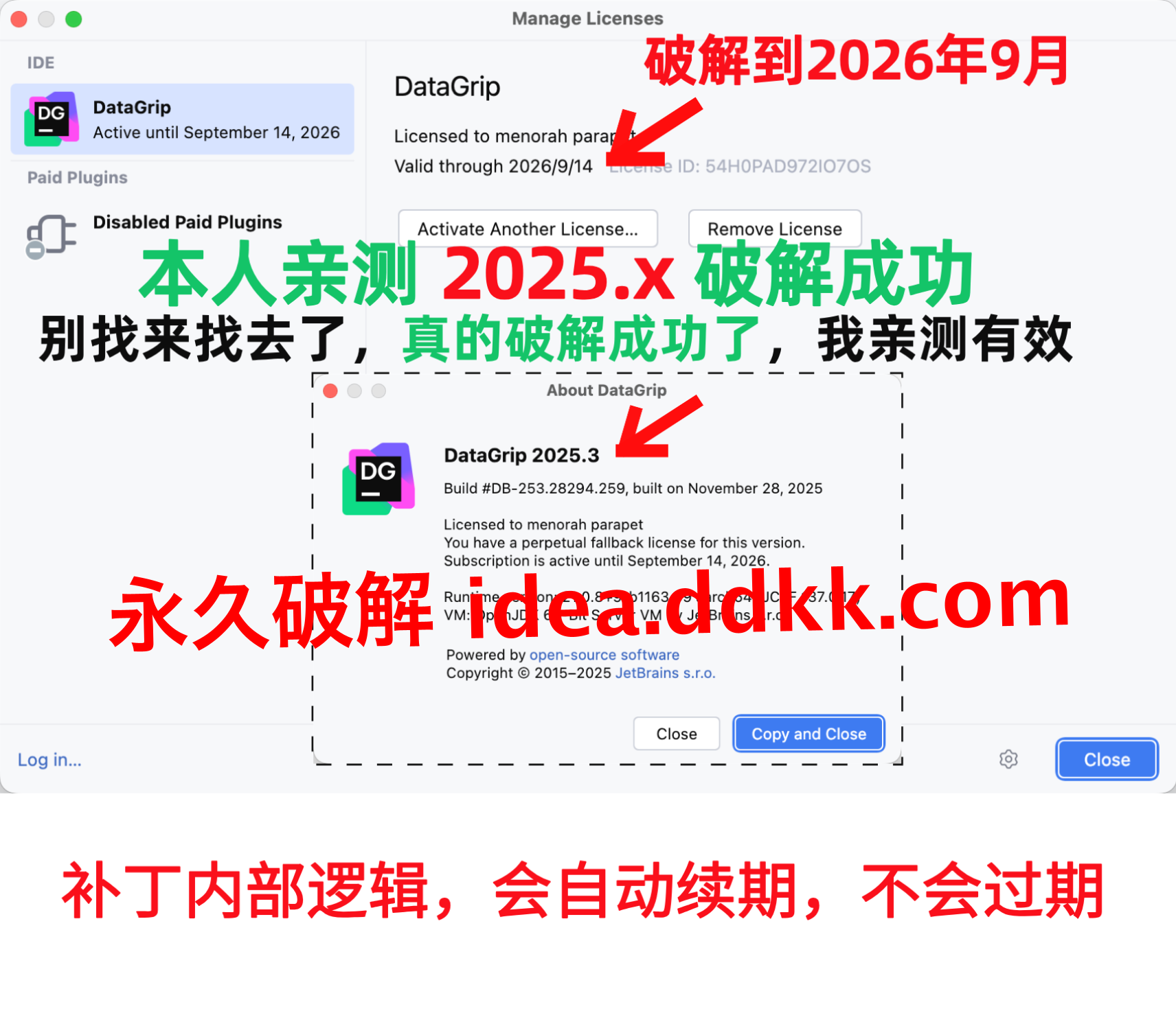 这套方法我在Windows和Mac上都测过,DataGrip 2025.3完美运行,连MySQL、PostgreSQL、Redis啥的都能正常管理,功能没任何阉割。