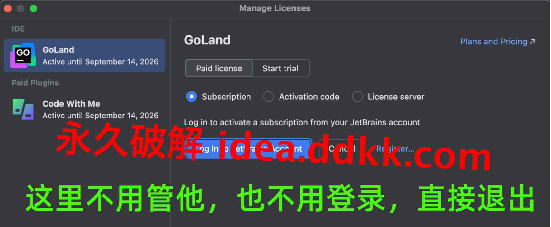 补丁装完就可以启动DataGrip了,这时候打开软件会再次弹出激活界面。