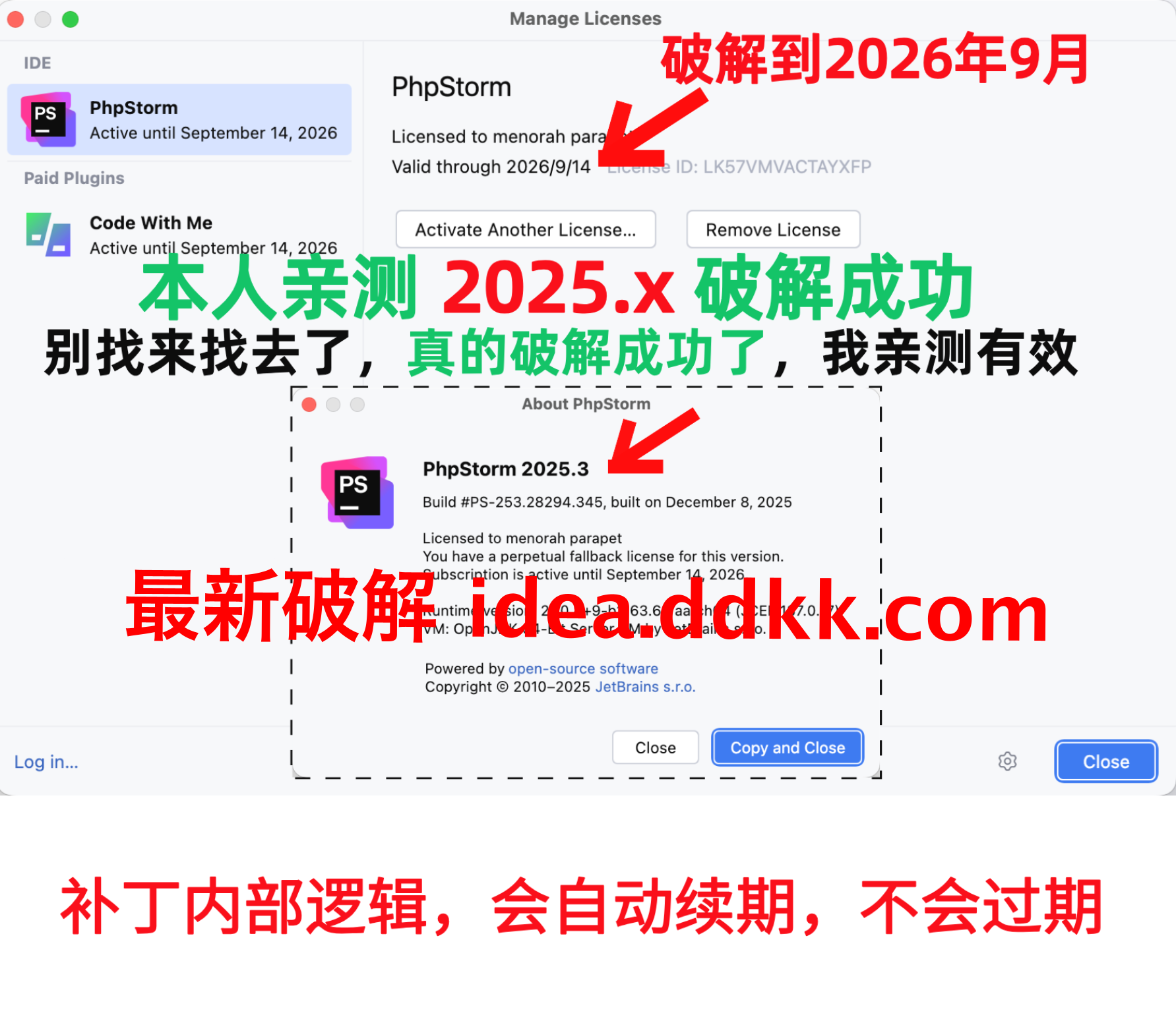 PhpStorm 2025.3 破解补丁,不要移动位置,不要删除【否则破解失败】