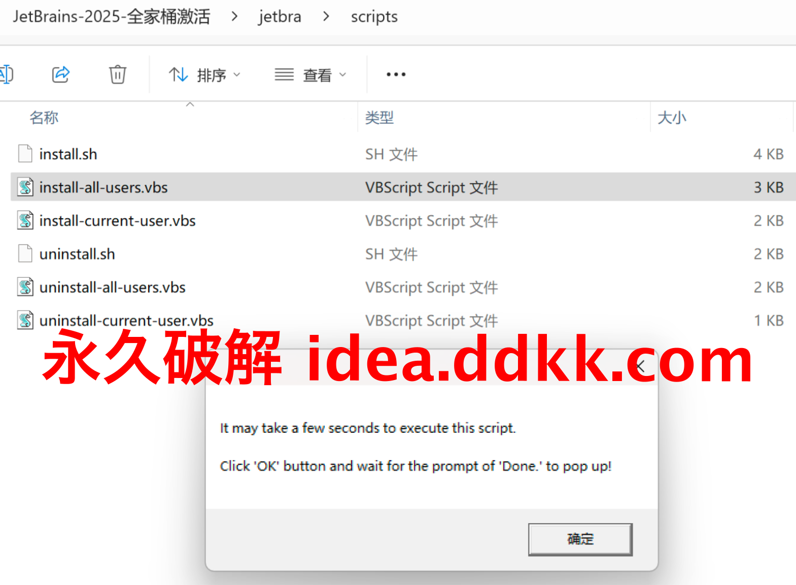 Windows的兄弟双击install-current-user.vbs,Mac和Linux的兄弟执行install.sh,操作很简单,脚本会自己定位DataGrip的配置文件位置,然后把补丁路径添加进去,全程都是自动化处理,你不需要手动改任何东西。
