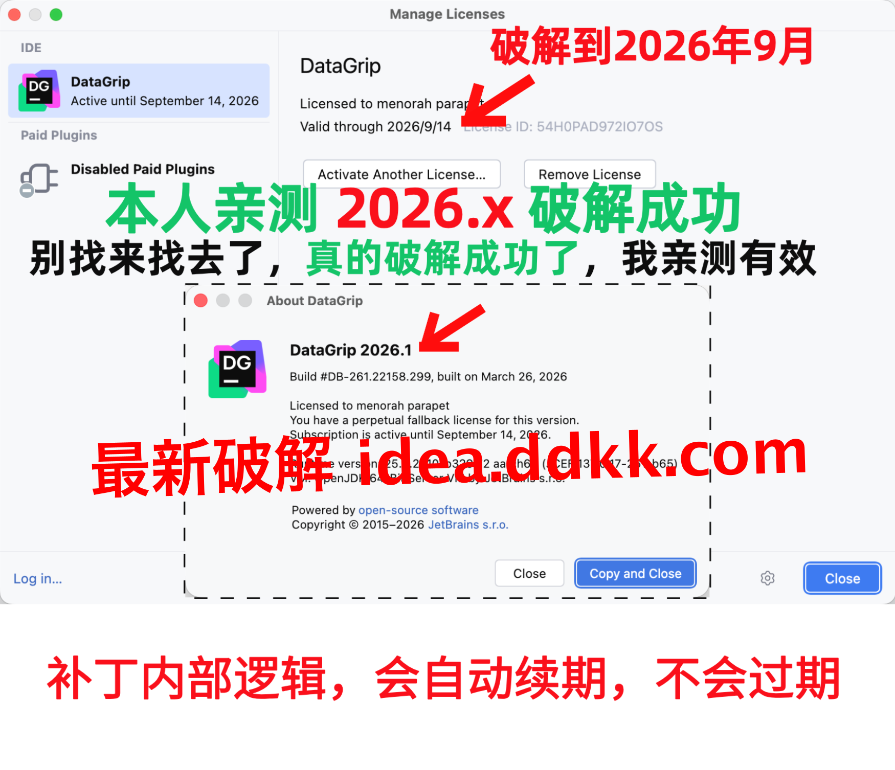 DataGrip 2026.1 破解补丁,不要移动位置,不要删除【否则破解失败】