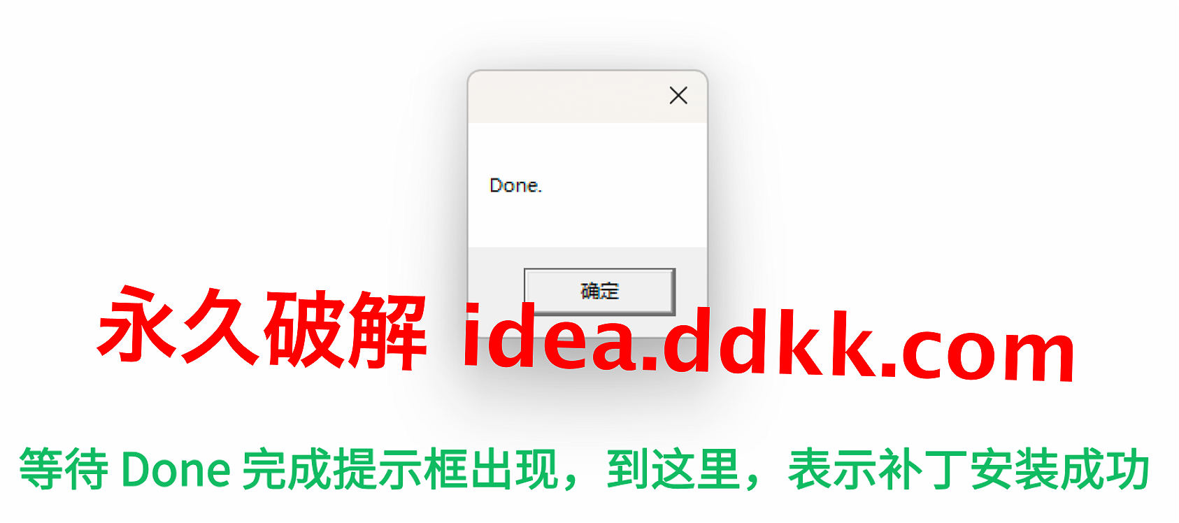 Done 弹窗,截图里这个,出来了就代表补丁装进去了,下一步去填激活码。