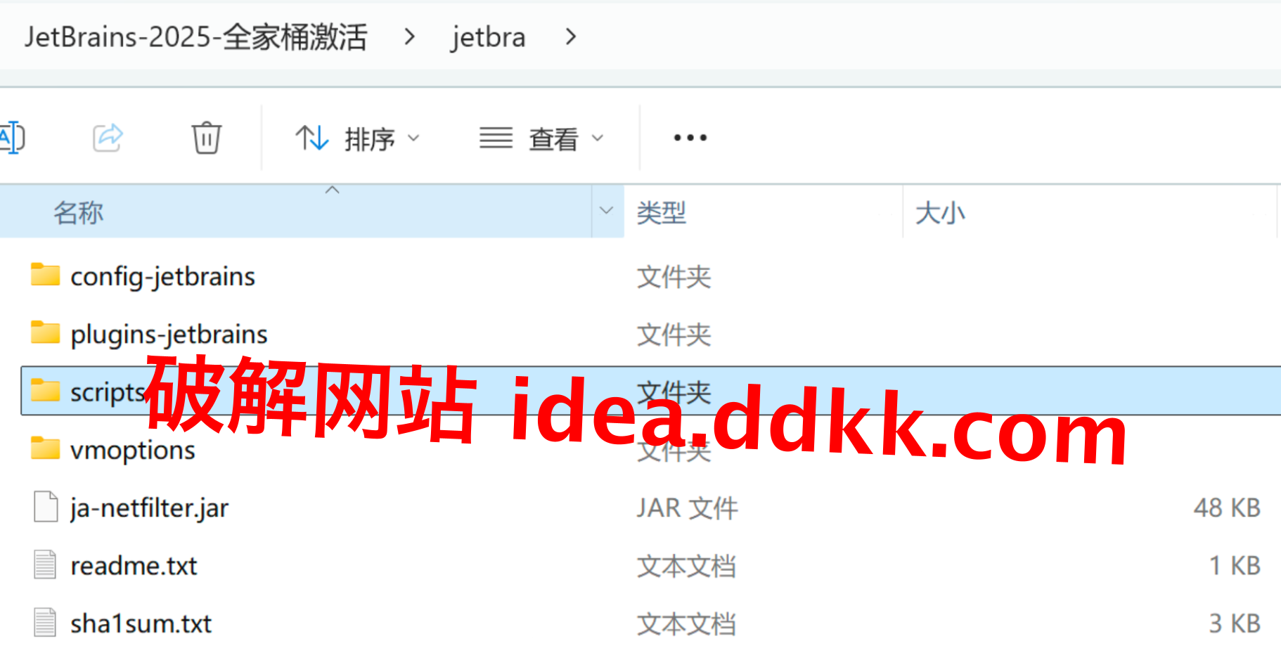 路径选好了,把 jetbra 文件夹整个移到那个英文路径下,然后进 scripts 目录,按系统找对脚本跑。