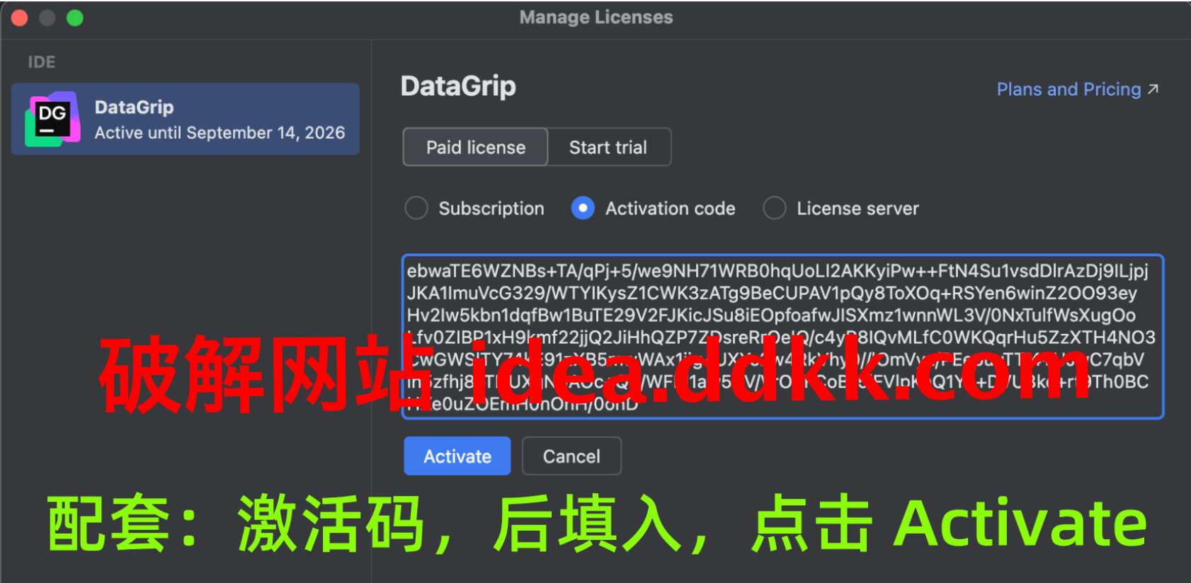 有一点要注意,JetBrains旗下每个产品的激活码是分开的,DataGrip用DataGrip自己对应的那个码,拿IDEA的码往这里填是无效的,别搞混了。