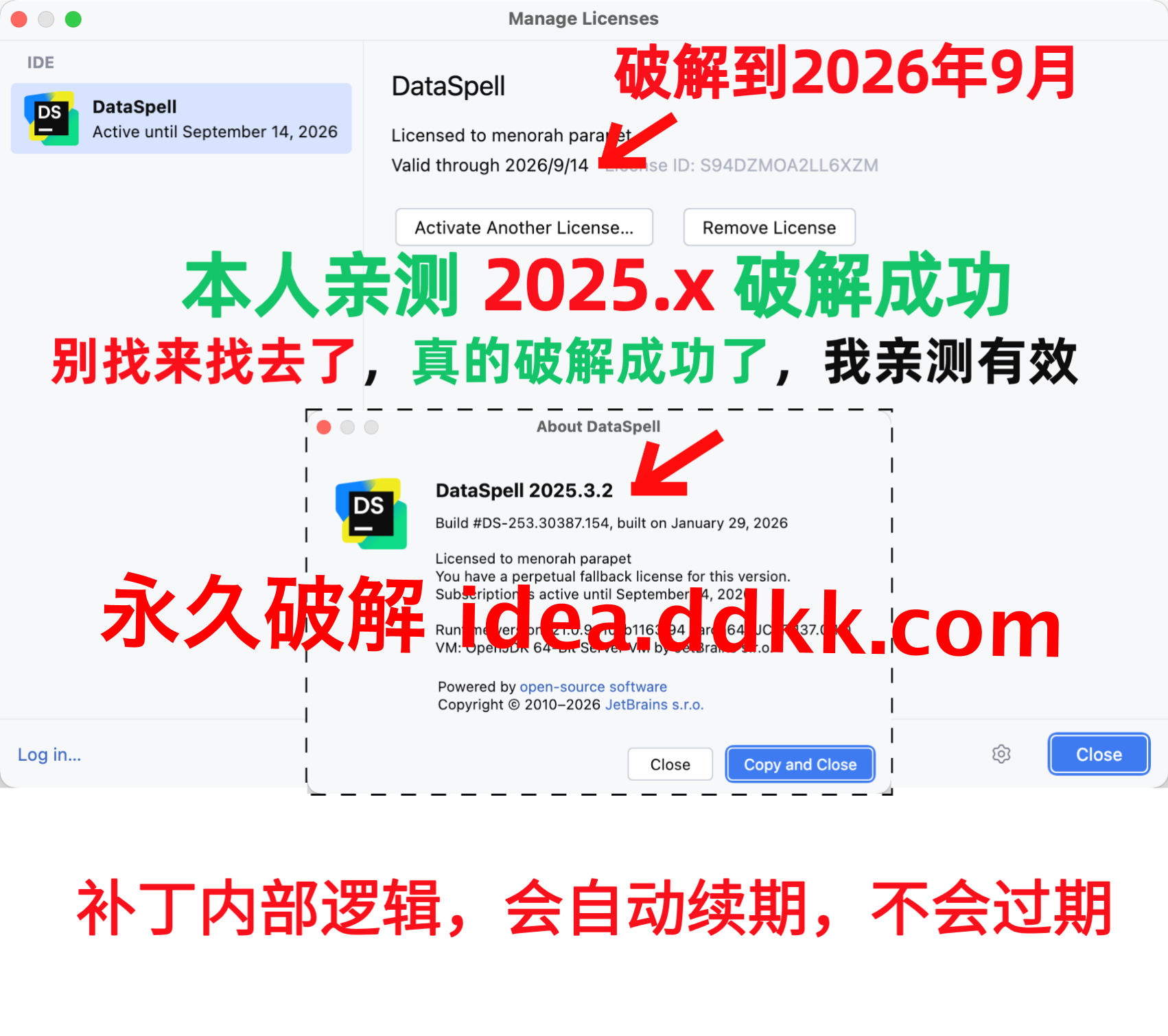 DataSpell 2025.3.2 破解补丁,不要移动位置,不要删除【否则破解失败】