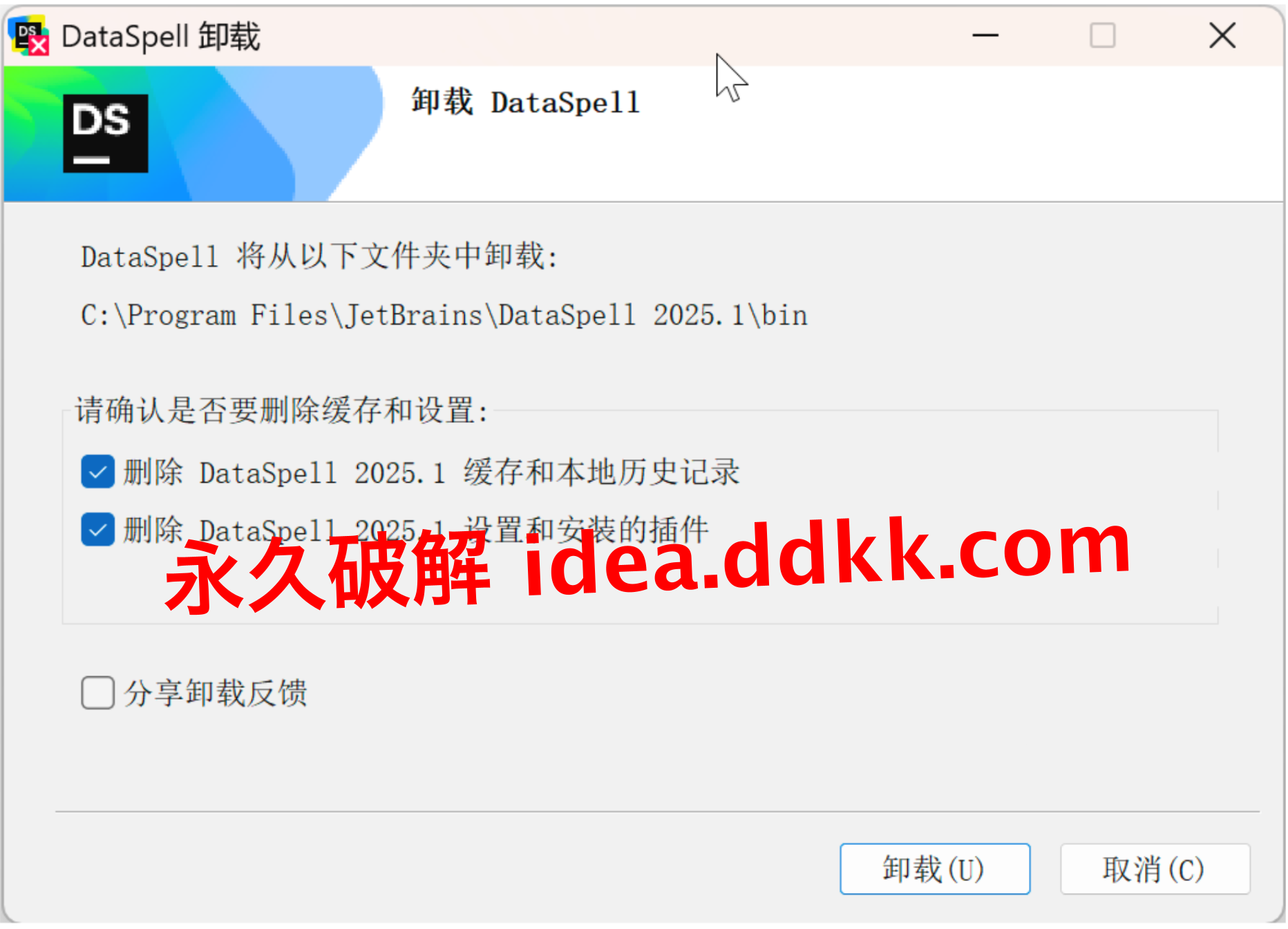 JetBrains目录下找DataSpell相关的子目录,删掉。放心大胆删,项目代码和数据文件不在那边,只是IDE的配置和状态记录。清干净了,环境回到初始状态,后面补丁才能扎稳。