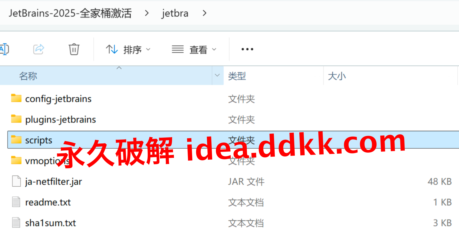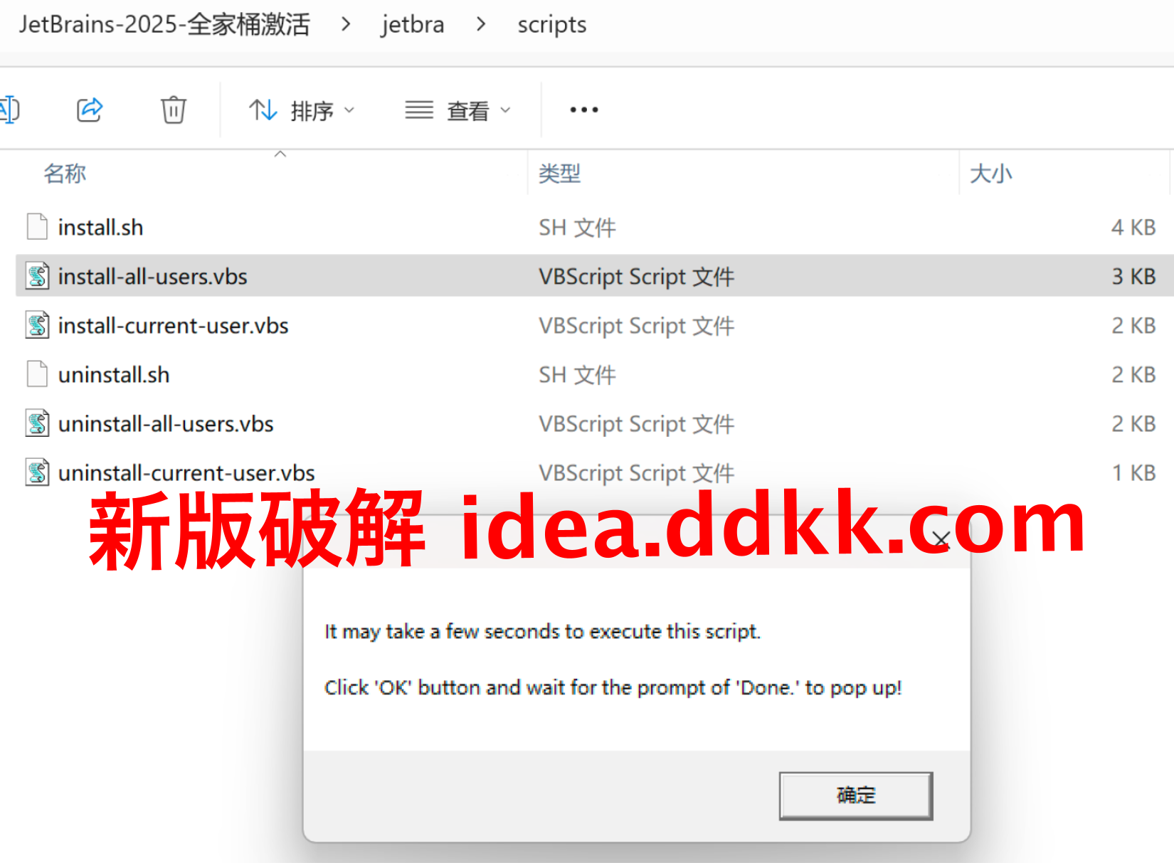 jetbra 这个文件夹确认放到了全英文路径之下了,然后进 scripts 目录,根据系统选脚本执行。