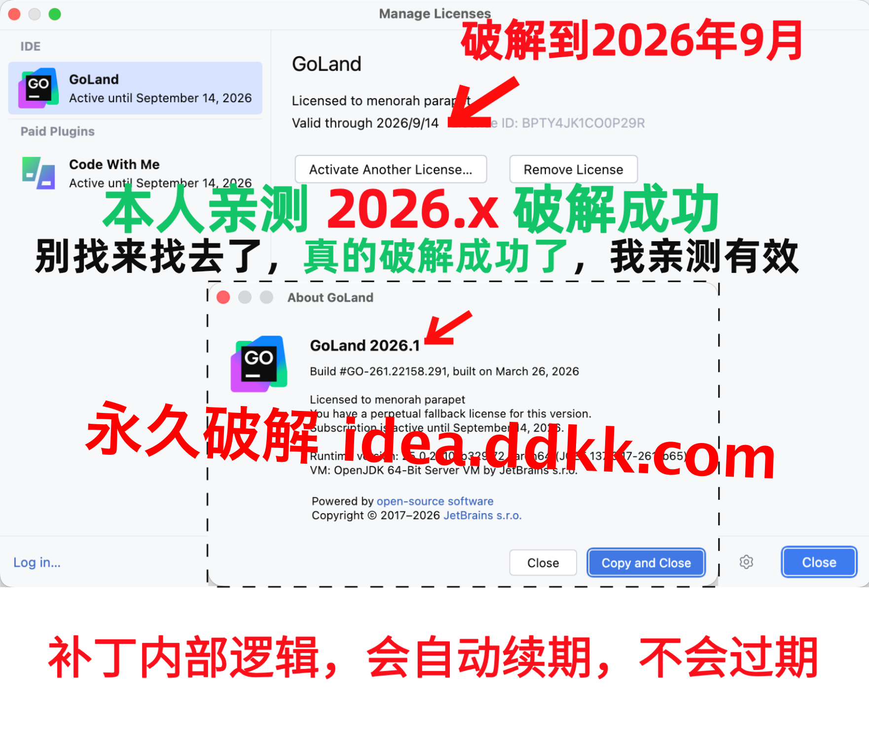 GoLand 2026.1 破解补丁,不要移动位置,不要删除【否则破解失败】