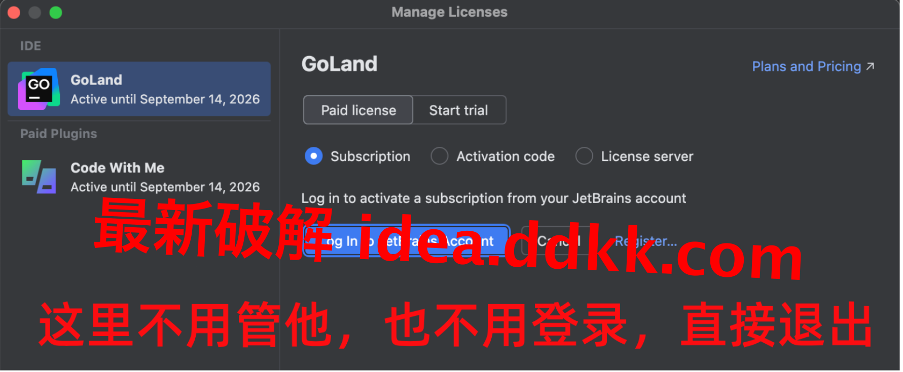 GoLand 2026.1 破解激活教程,Go 开发者终于不用年年续费了