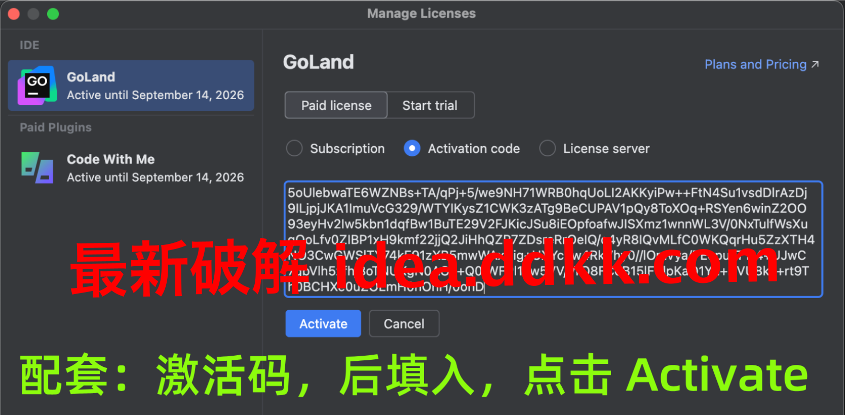 激活码填进去,GoLand 专属的别搞混