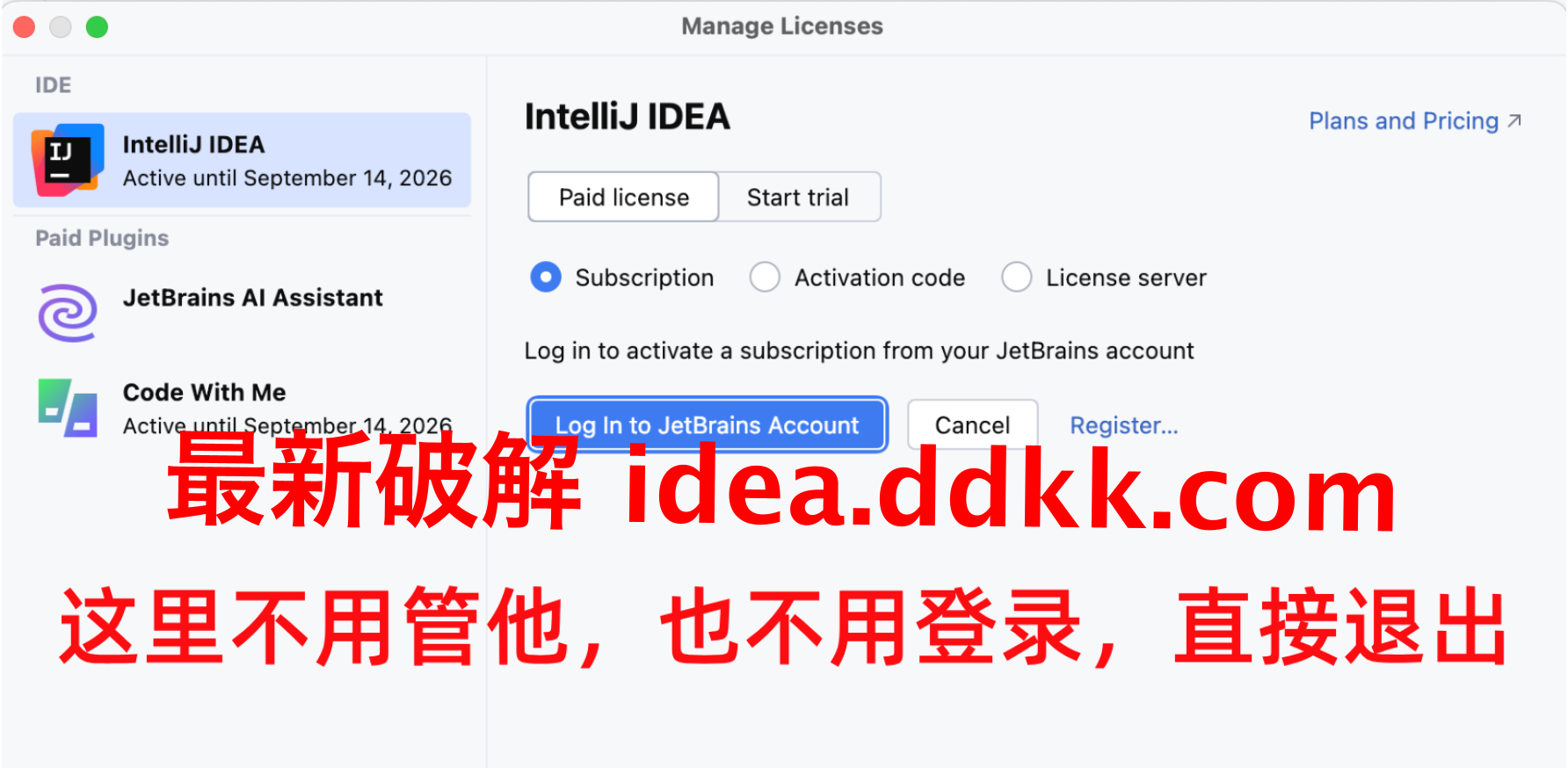 JetBrains每个产品对应的激活码都不一样
