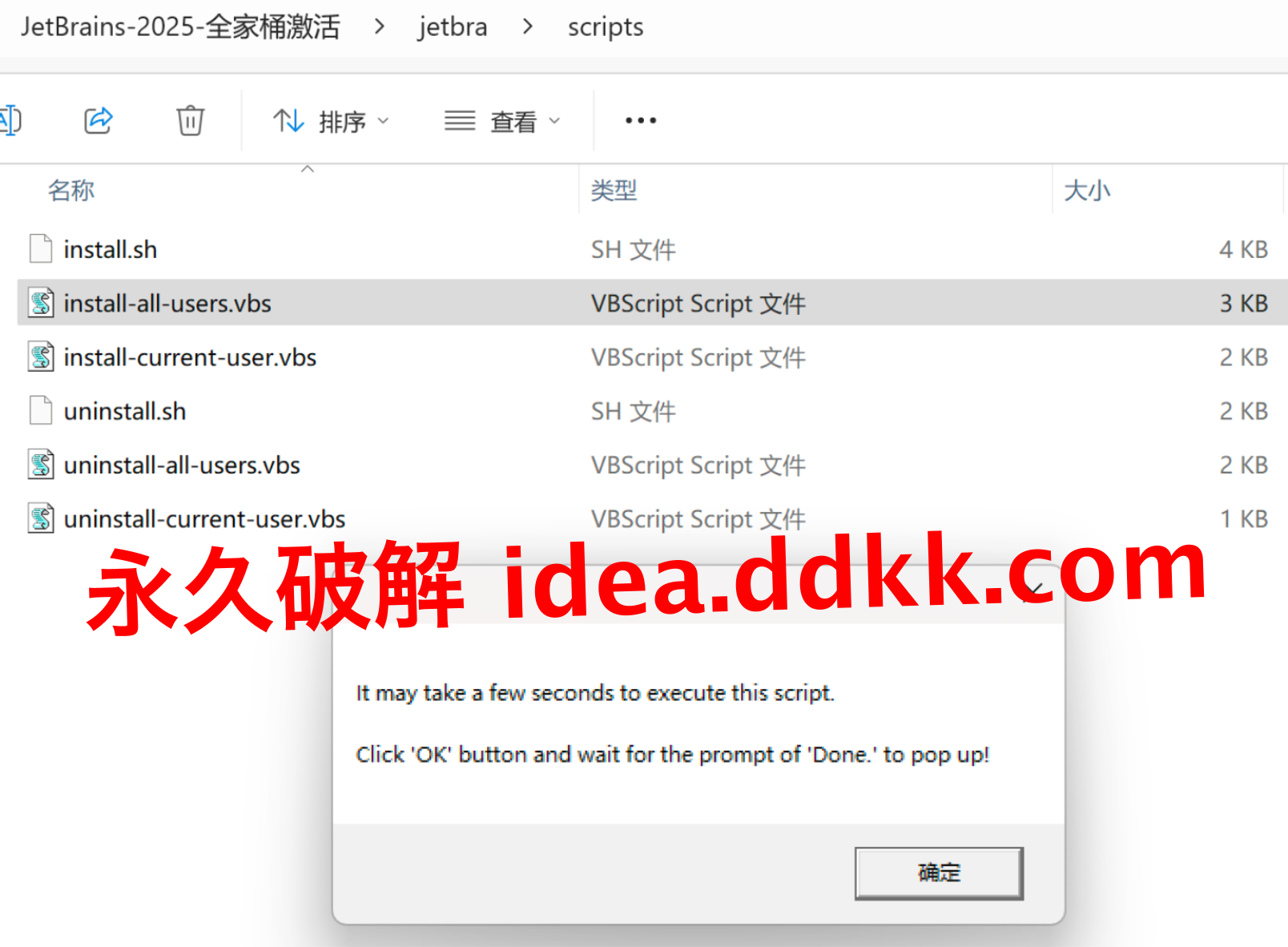 这个文件夹装的是各种脚本,Windows用的,Mac用的,Linux用的都有,你按自己的系统挑对应的用;这些脚本的功能是自动帮你把破解补丁的路径塞进IDEA的配置文件,不用你手动去改配置文件,对新手来说确实省事多了