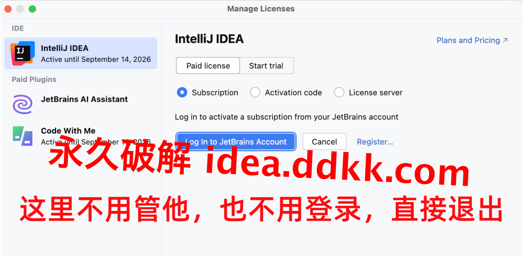Jetbrains 每个产品,对应激活码都不一样