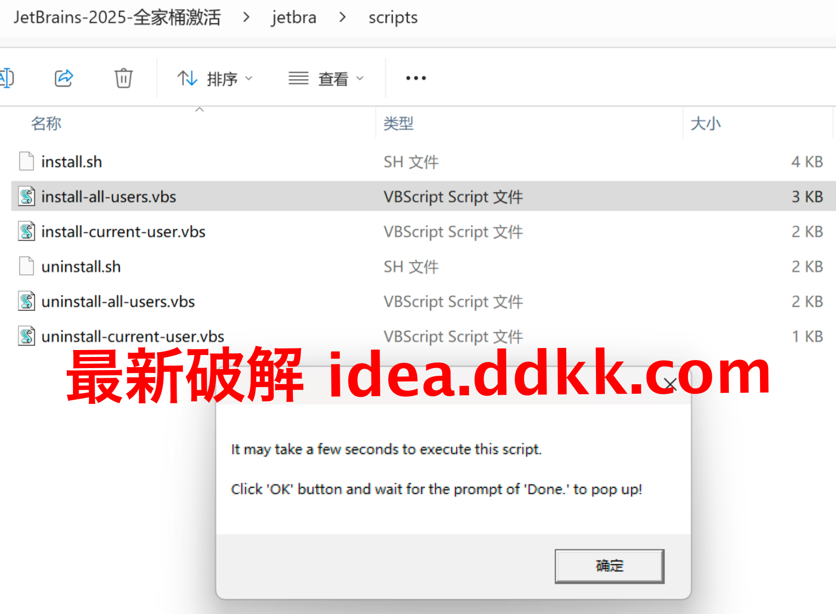 这些脚本的作用就是自动帮你修改idea.vmoptions这个配置文件,把破解补丁的路径加进去。对新手来说,这确实省事,不用自己手动去改配置文件了,脚本帮你搞定。