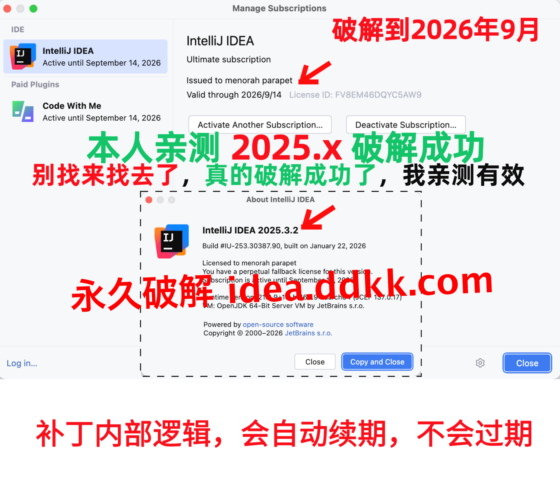 IDEA 2025.3.2 破解补丁,不要移动位置,不要删除【否则破解失败】