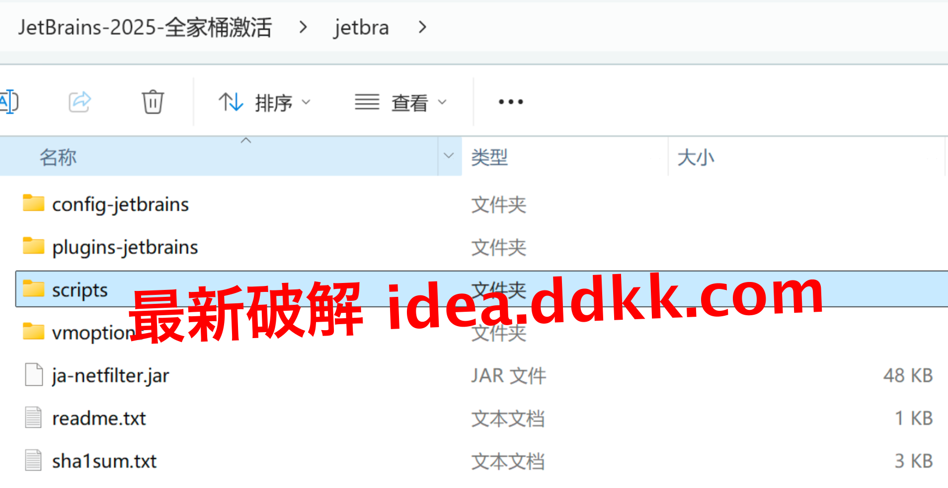 打开scripts文件夹,里面放的都是自动安装和卸载的脚本。我鹏磊觉得这个设计挺人性化的,省了不少事。这些脚本的作用是自动在idea.vmoptions配置文件里引入破解补丁,对于小白来说特别方便,不用手动去改配置文件了,脚本会自动帮你搞定。Windows、Mac、Linux三个系统的脚本都有,你根据自己的系统选对应的就行。