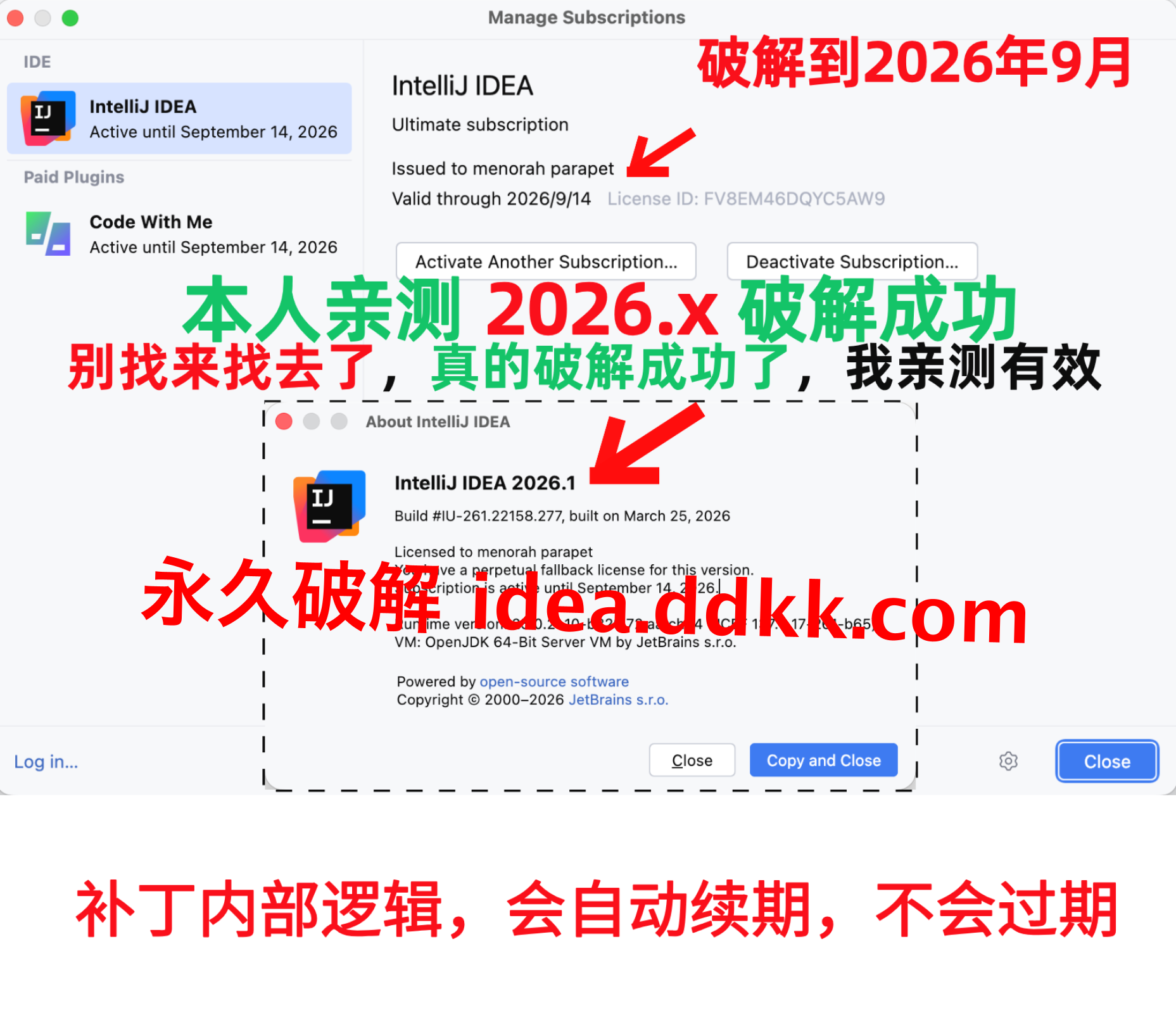 IDEA 2026.1 破解补丁,不要移动位置,不要删除【否则破解失败】