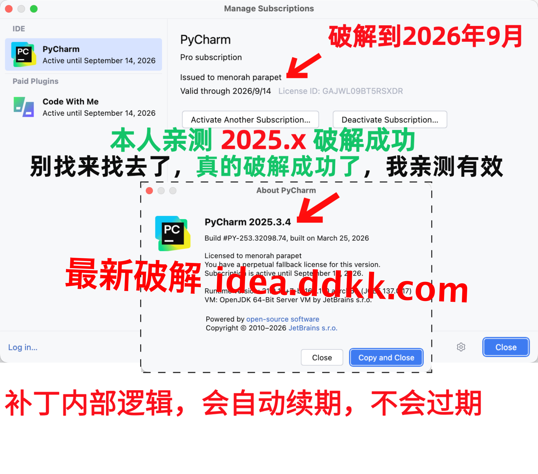 PyCharm 2025.3.4 破解补丁,不要移动位置,不要删除【否则破解失败】