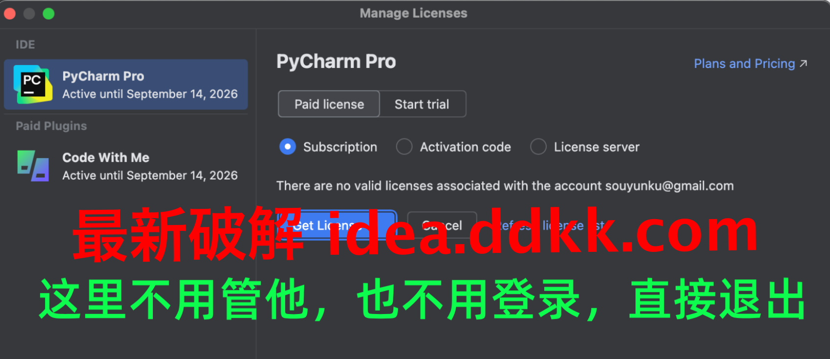 对了还有,就算你账号买过 Community 版,也不要现在登,等破解流程走完了,Professional 激活成功了,那时候进去才是对的。