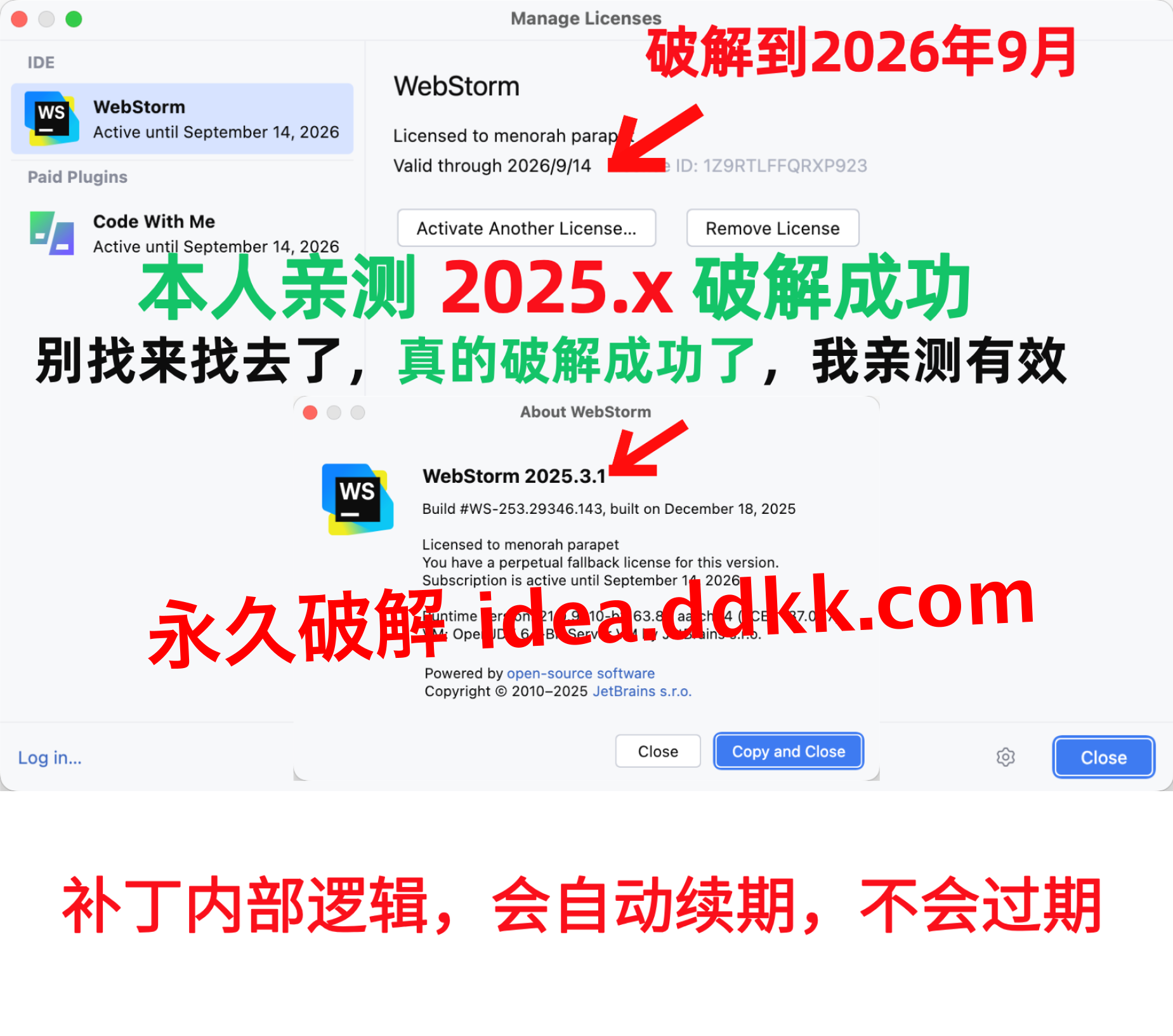 WebStorm 2025.3.1 破解补丁,装好后别乱动位置,也别删【否则破解就失效了】